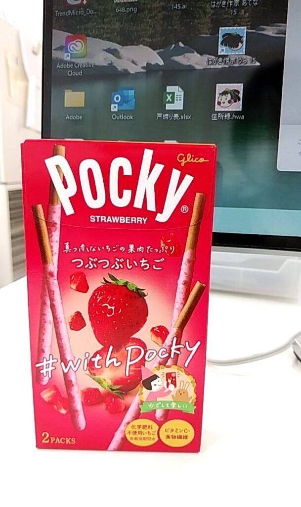 特に意識していなかったのですが、行きつけのコンビニのレジ前に一週間くらい前から陳列してあったいちご味のポッキーが気になっていて、遂に買ったのが今日という偶然の巡り合わせが起きました😮